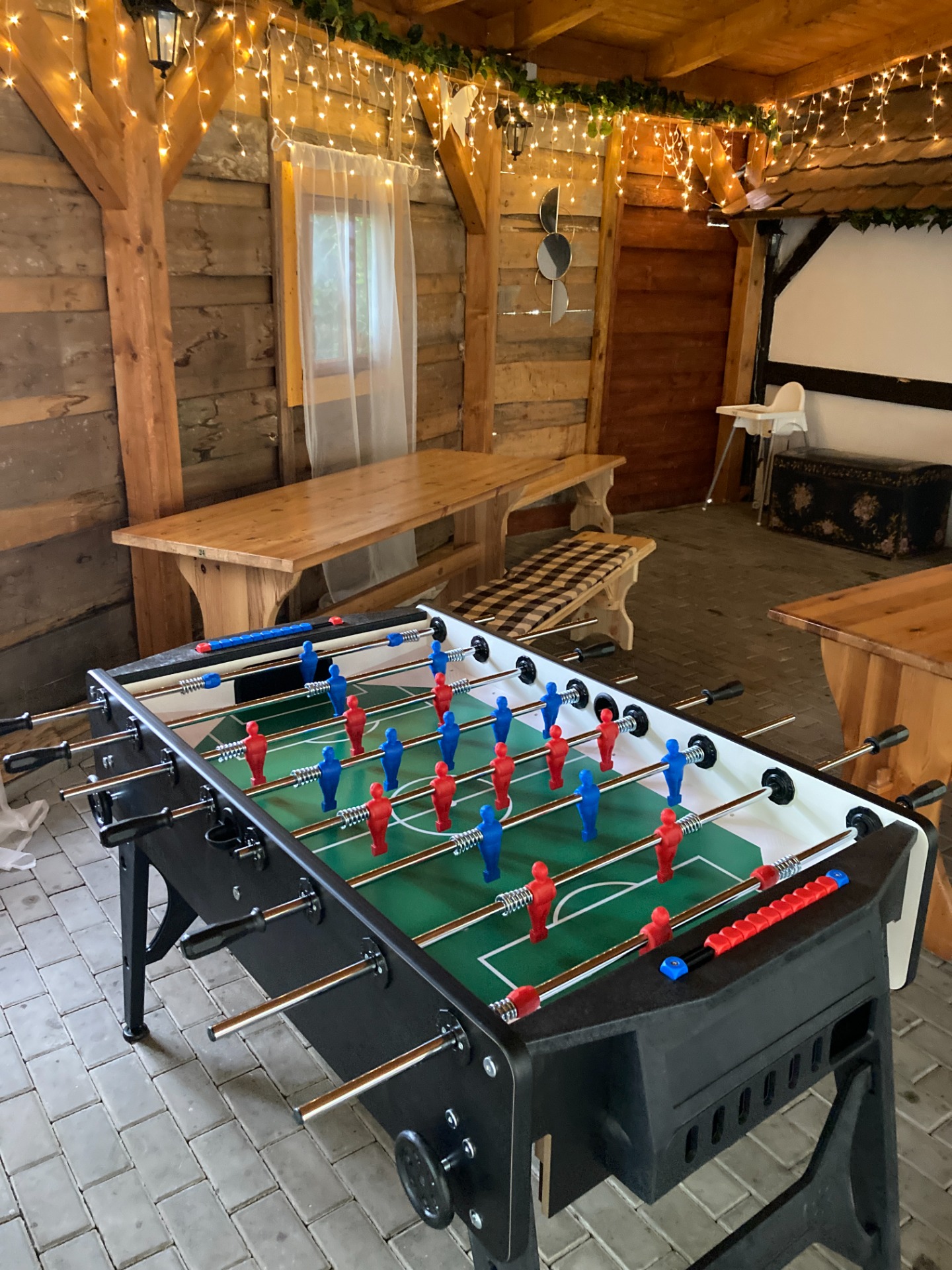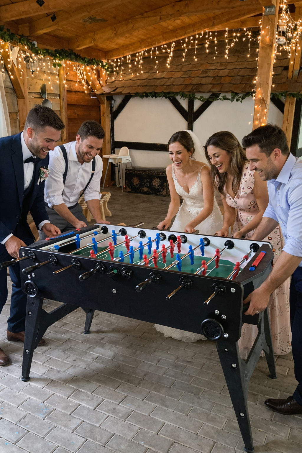 Profi stůl na fotbálek se sklopnými nohami. Není ve svatební úpravě - použití i na teambuildingy, oslavy, ...